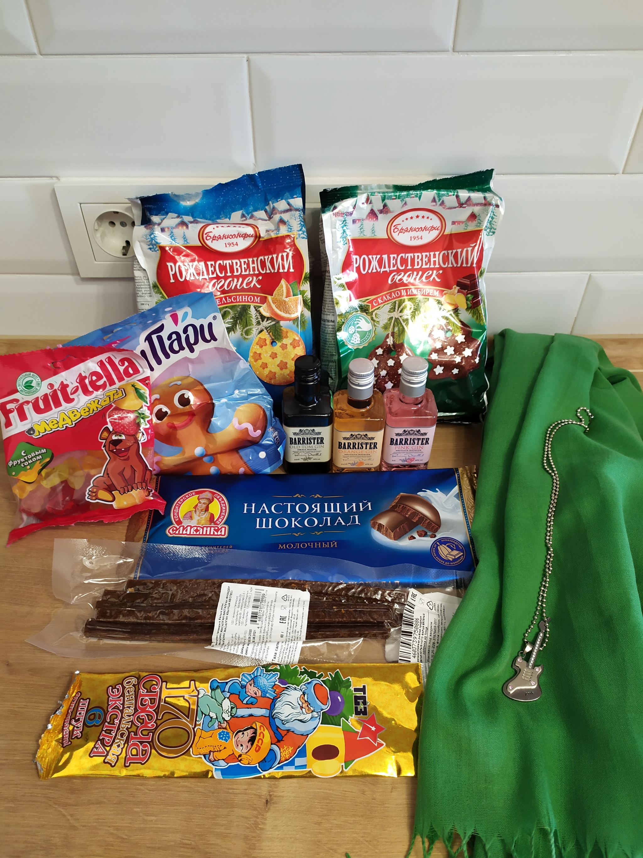 Особенно порадовал палантин в мою коллекцию! В прошлом году мне подарили красный, а в этом зелёный. Так что теперь у меня прям новогодняя коллекция))