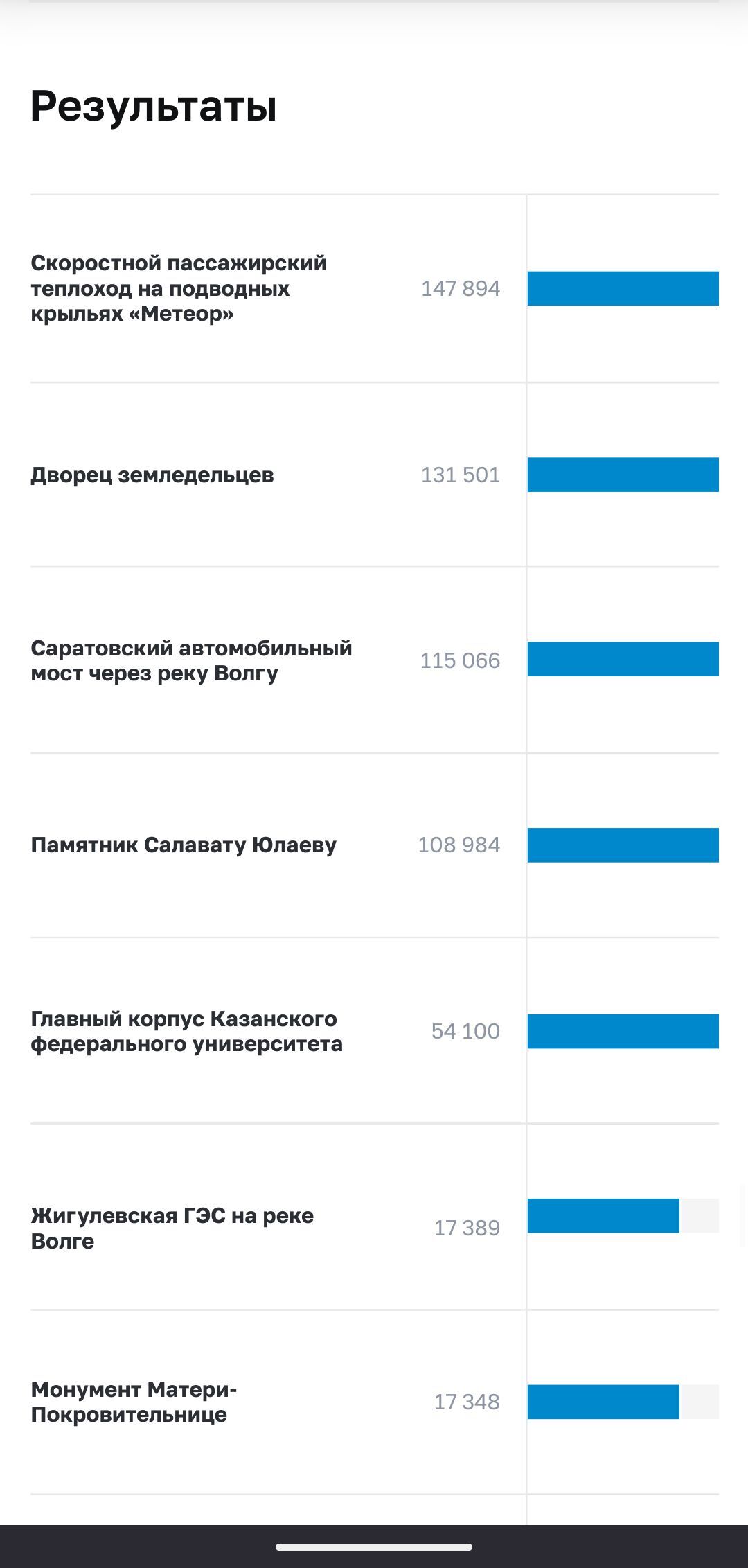 Как вы видите на скриншоте победил теплоход "Метеор", а Салават даже не занял 2 или 3 место, хотя всё голосование он держался 2-ого места и был очень близок к первому. Но так же как и в случае с Эльбрусом стоило ему подобраться близко к метеору, так голоса метеора улетали вверх.