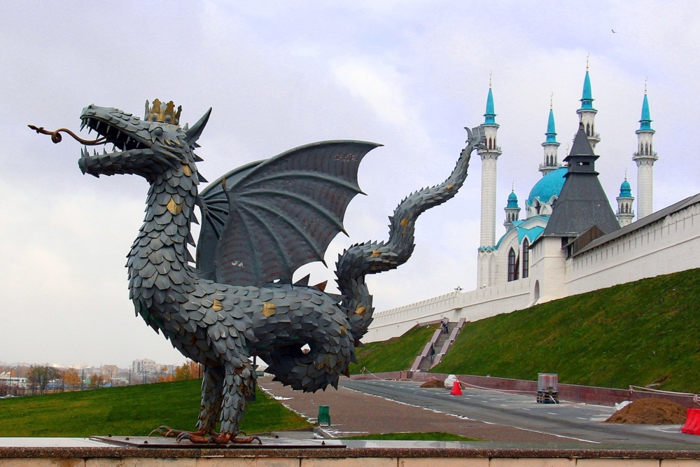 Перед стенами кремля установлена скульптура Казанскому дракону Зиланту . Образ Зиланта с отрицательной характеристикой встречается в мифе о возникновении Казани. Согласно ему, когда город был основан, один из змеев, ранее обитавших на месте современной Казани и истреблённых переселенцами, сумел спастись на холме Джилантау, после чего он «наводил ужас на жителей города», но впоследствии был убит. Видимо, из вредности его образ теперь показывает всем язык...