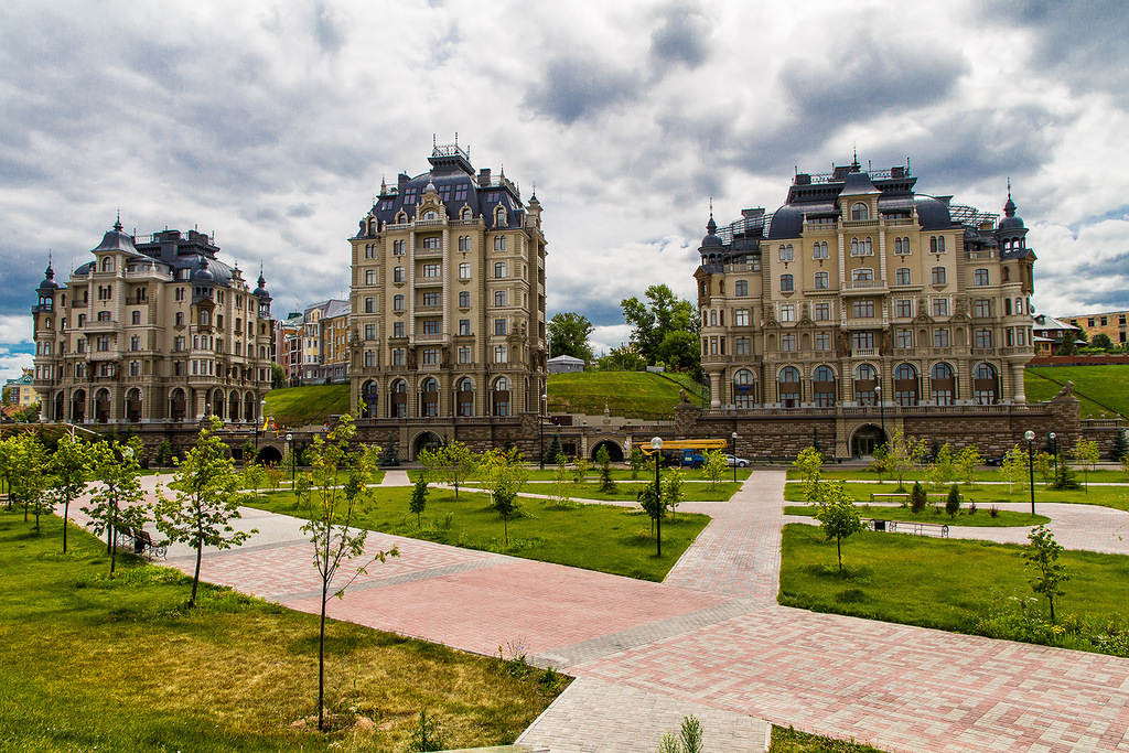 А с другой стороны от дворца начинается элитный жилой район Вахитовский. Страшно представить сколько стоят квартирки в таких домиках, с таким видом из окна...)