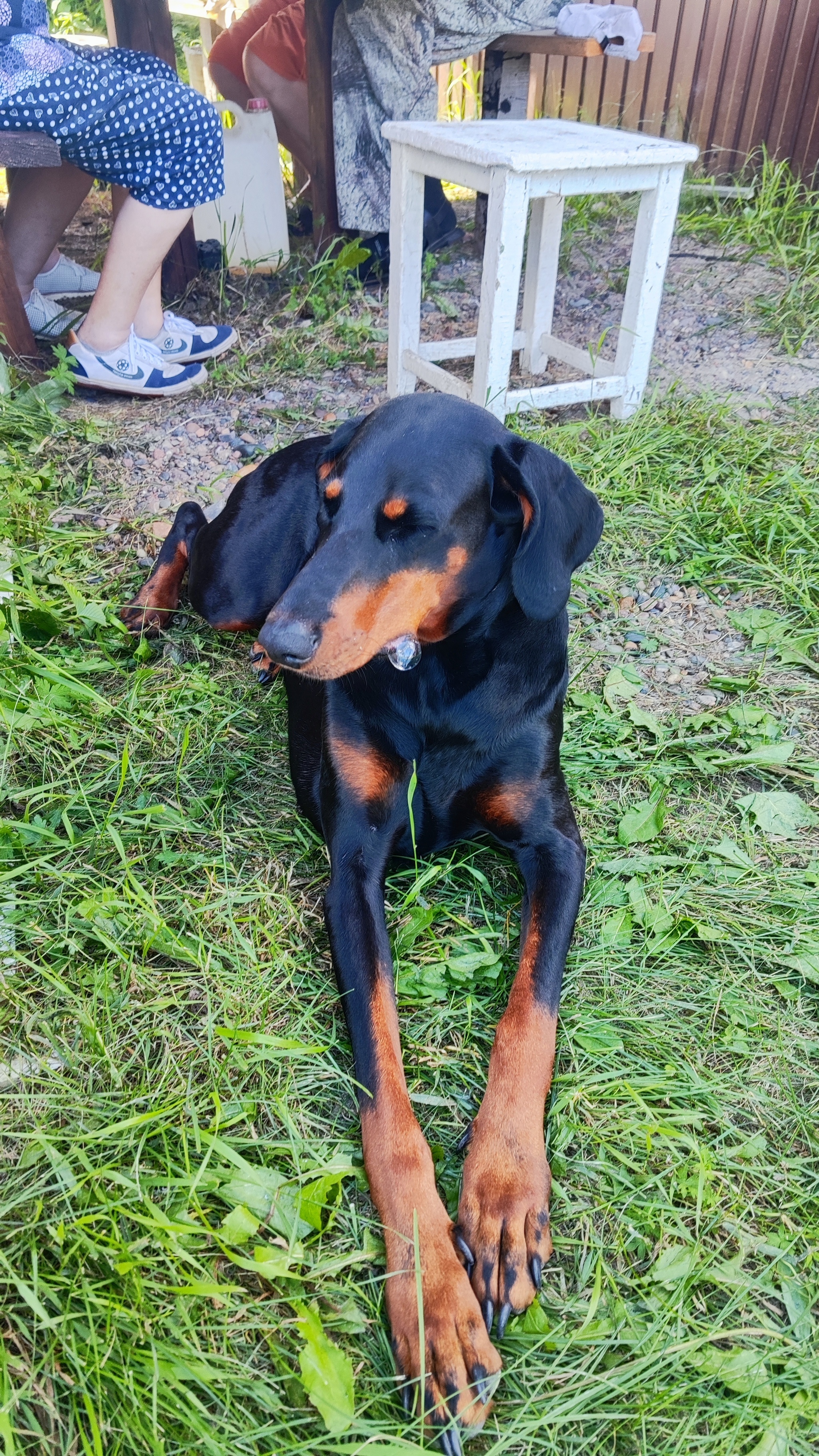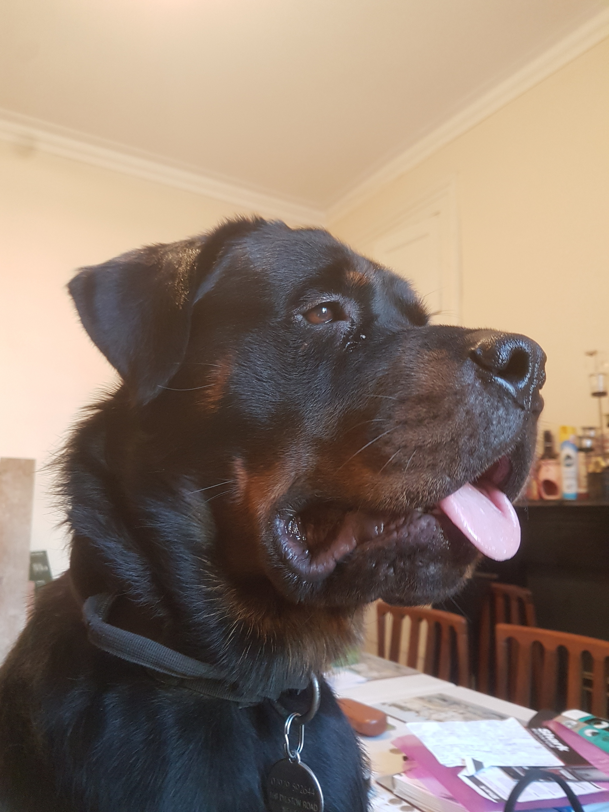 А, я обманулся на ухи- стоячие были раньше привычнее. В соседнем доме ротвейлер живет: ухи висят и хвост крендельком- в таком формате совсем не страшный:)