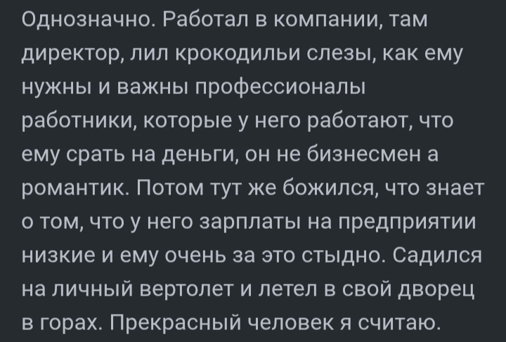 1020 DELETED Прекрасный человек2 5 месяцев назад #comment_358502762 Директор Прекрасное Человек Человеколюбие Работа Сотрудники Маленькая зарплата Сарказм Зарплата Рабочие Трудовые отношения Комментарии на Пикабу Скриншот 56 30 2 1 1 Ещё 0