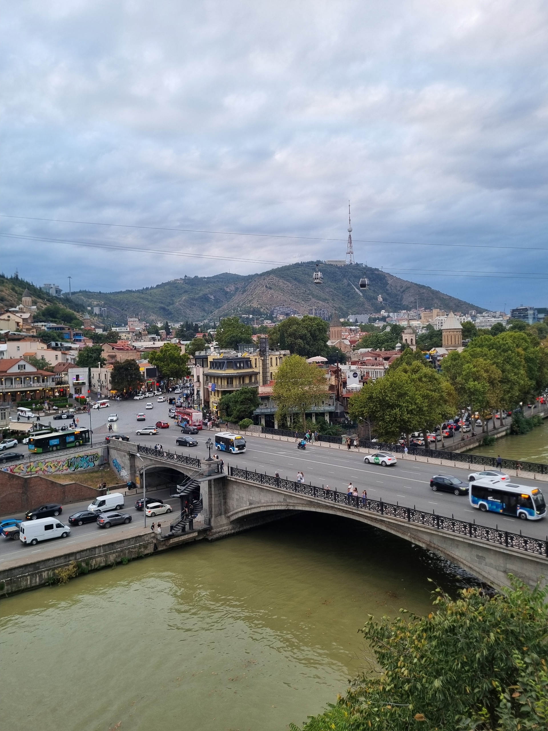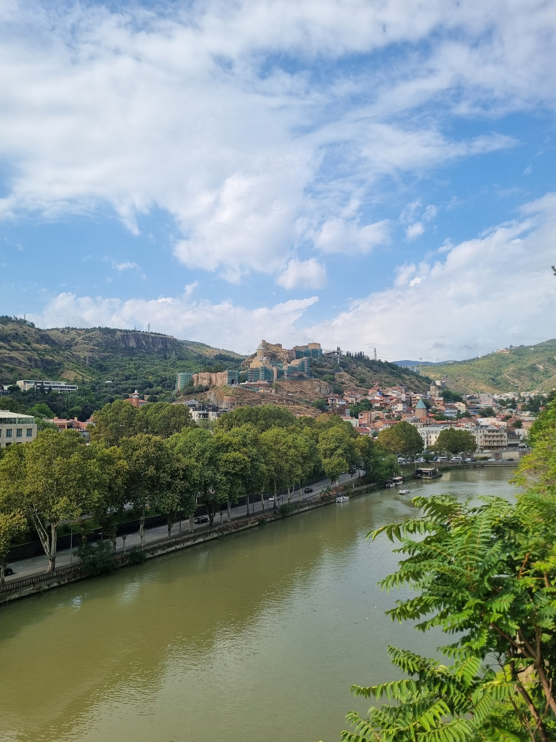 Наш отель находился на обрыве холма, буквально паря над рекой Кура, благодаря чему мы с первых минут прибывания в городе могли наслаждаться вот такими прекрасными видами из окна.