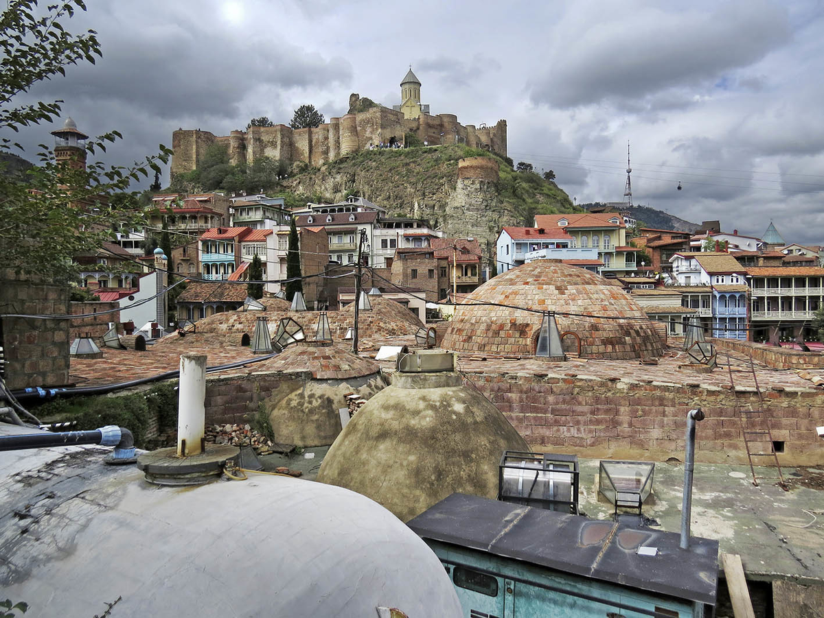 Здание справа, напоминающее мечеть, на самом деле также является баней, носящей название "Пестрая". Русло реки Цавкисисцкали, придает району потрясающую атмосферу Средневековья.