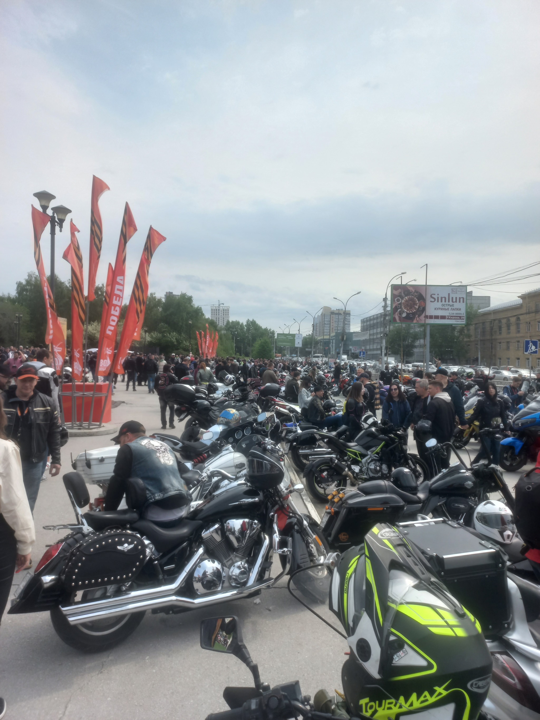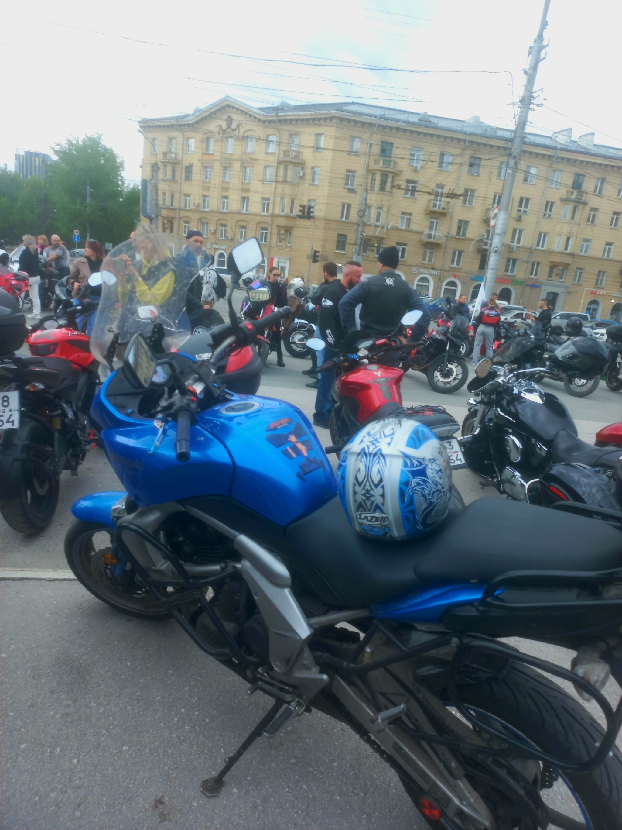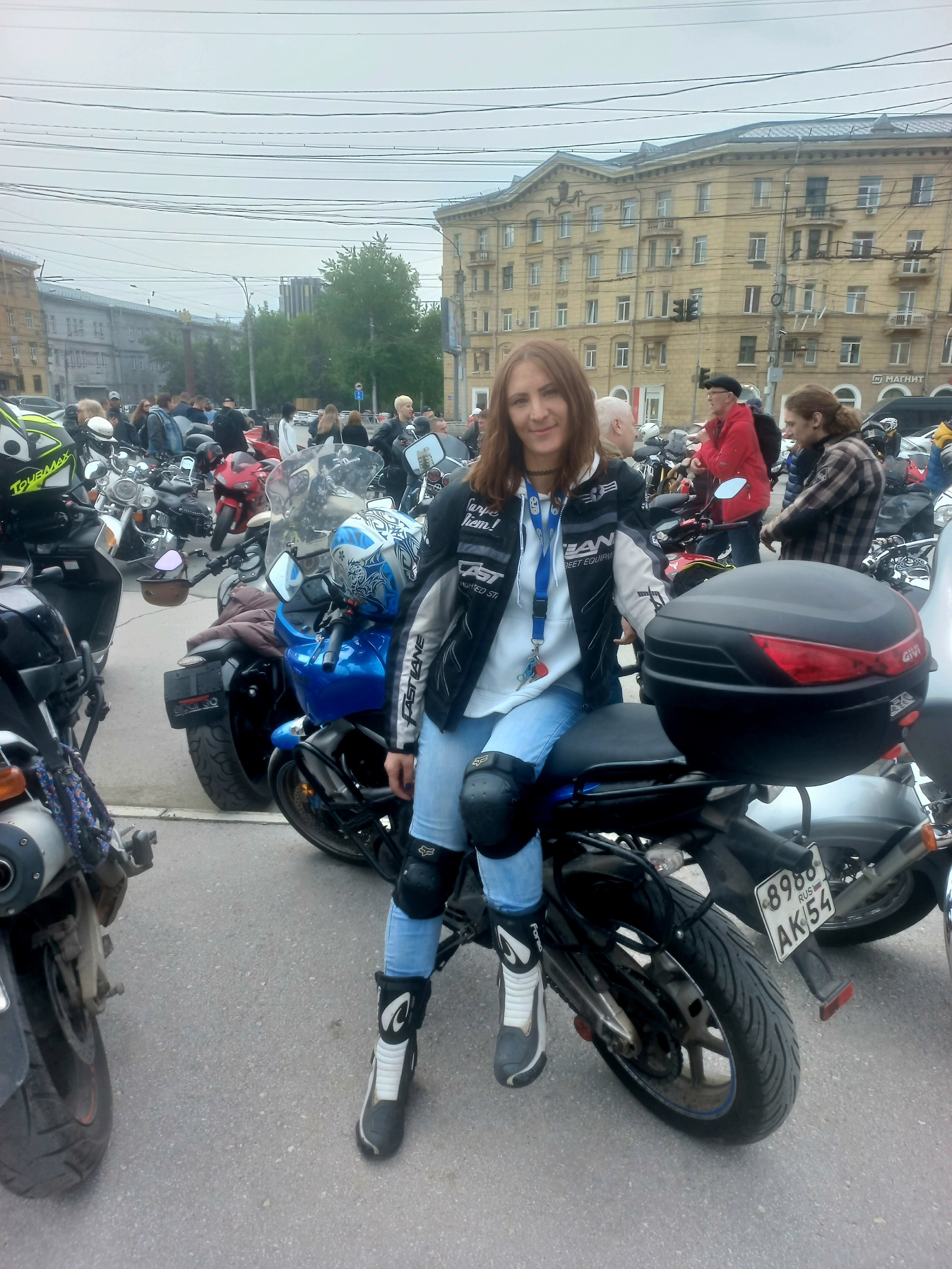 Далее еду открывать мотосезон уже на своём постоянном месте жительства и, блин, такой дубак тут встречает. Всего каких-то 12 градусов тепла. Для меня это сидеть дома, обняв тёплые полы. Как бы то ни было, бабка Настя, ворча на себя, покатила на площадку открытия. Надо ж себя показать и на людей посмотреть. Хотя из старых знакомых увидела ровно 9 человек. Так этого и достаточно: пообщались, пофотались. Я то и поехала увидеть старые знакомые лица.