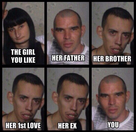 Нет, это вариация известного мема. Фото рандомные, понадёрганы из интернетов. Девушка с топором - довольно известная картинка.