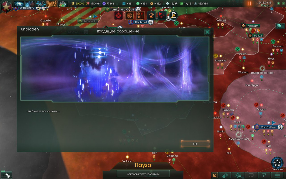 Почему же все-таки Преторианцы вторгаются в чужие Галактики ? Почему же им не сиделось дома, где они могли бы спокойно развиваться и жить мирно ? Ответ на этот вопрос есть и дают нам его сами Преторианцы. Опять же если их спросит почем они вторгаются в чужие Галактики, то они дадут ответ, что они были вынуждены бежать из своей Галактики, так как их преследуют так называемые "Незванные гости" - это еще один кризис в Stellaris, который идет обычно после Преторианцев.