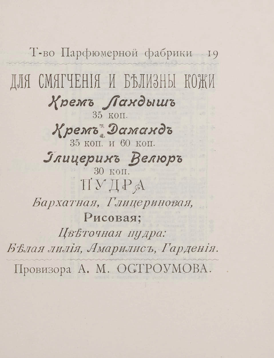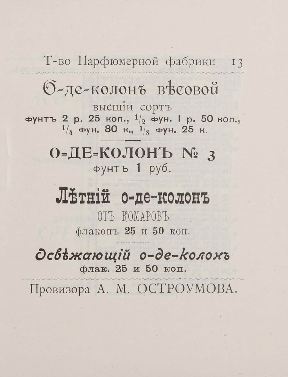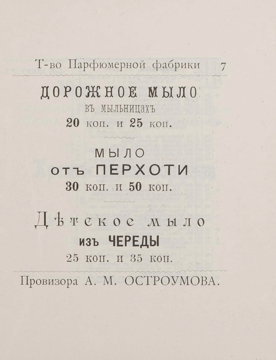 54 southklad Лига историков История Прейскурант парфюмерной фабрики провизора А. М. Остроумова 1912 года Серия Каталоги и прейскуранты 1 месяц назад Без картинок конечно, но вполне интересно ОТСЮДА Картинки Книги Историческое фото Российская империя Прейскурант Цены Парфюмерия Каталог Мыло 20 век История России Длиннопост 1 Ещё 0