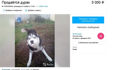 тот момент когда надо что-нибудь пиздануть невпопад. мой собакен дома в москве и продавать я его не собираюсь - https://www.instagram.com/lidoff_s/