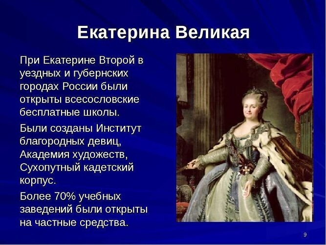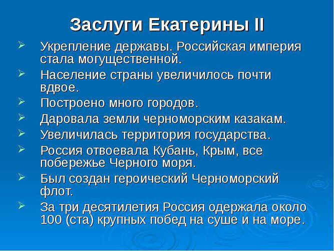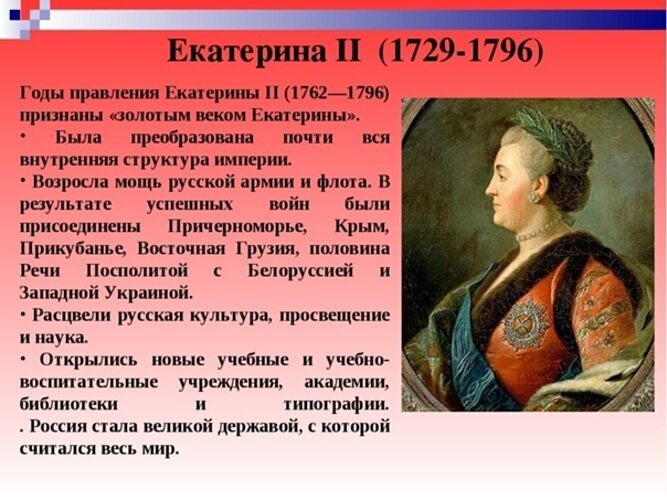 Екатерина вторая много что сделала для Украины. Считай при ее царстве отстроились многие города. Сейчас она не в почёте, она для Украины враг, так как она с России, Русская. Не по нации, а по духу.