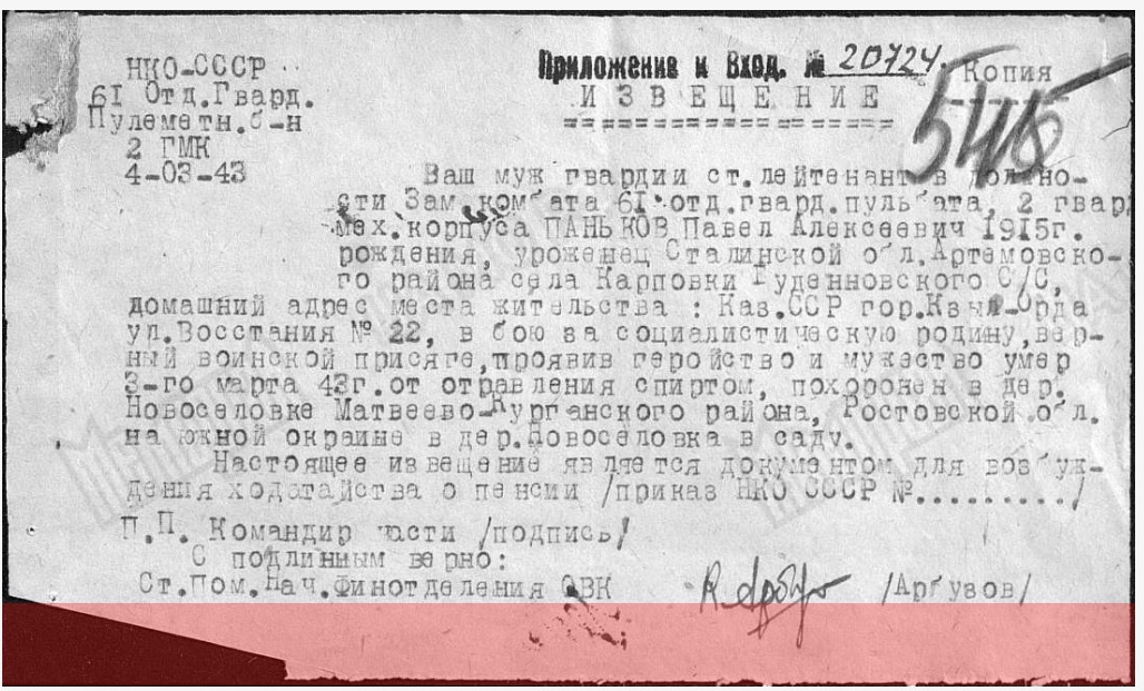 умер 3-го марта 1943 года, от отравления спиртом ..."