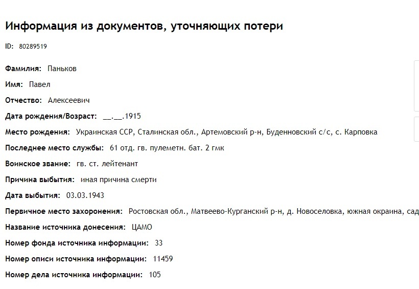 Довольно интересные документы опубликованы по гвардии старшему лейтенанту Панькову Павлу Алексеевичу.