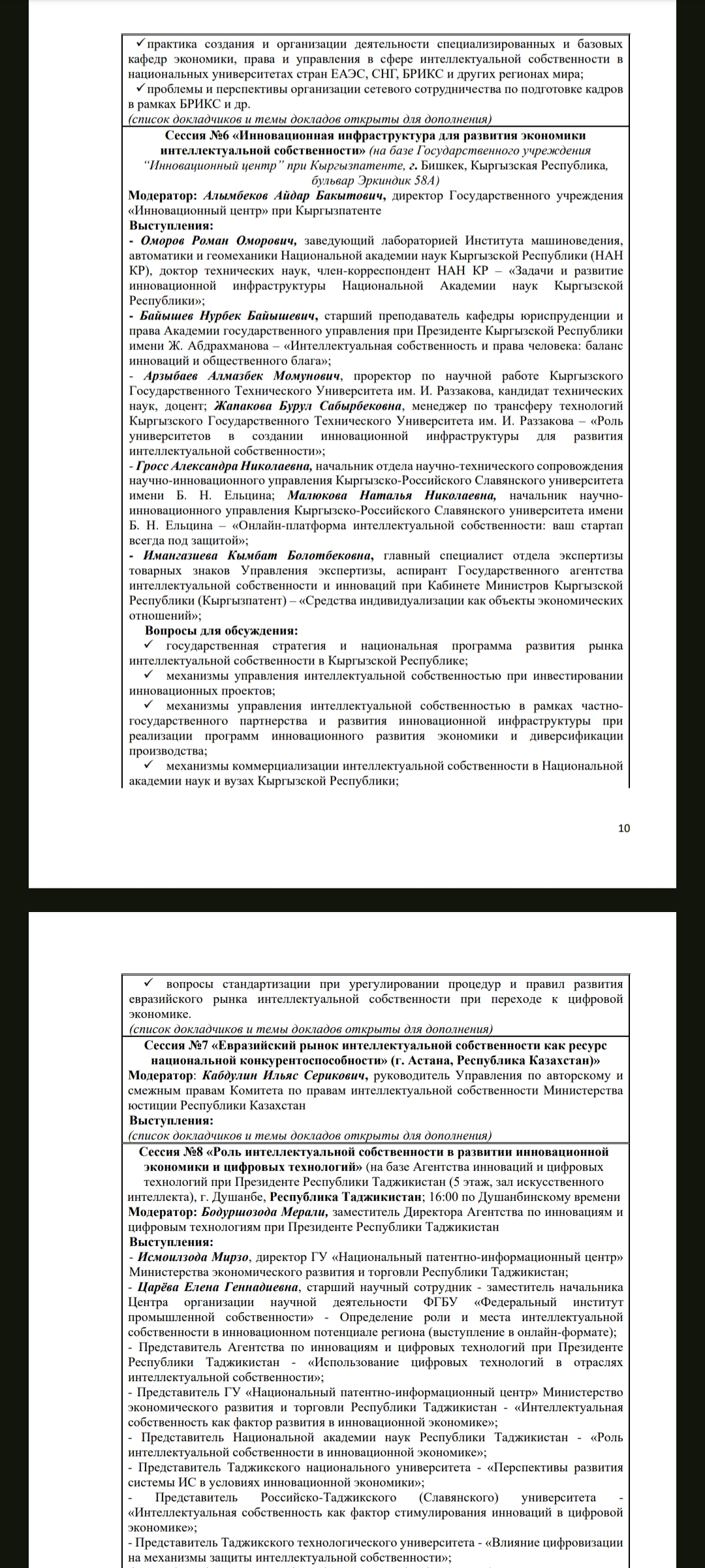 - обобщение опыта формирования рынка интеллектуальной собственности и обеспечения технологического суверенитета в рамках инновационного развития и перехода к цифровой экономике в мире, странах ЕАЭС, СНГ, ШОС и БРИКС в 2024 г.;