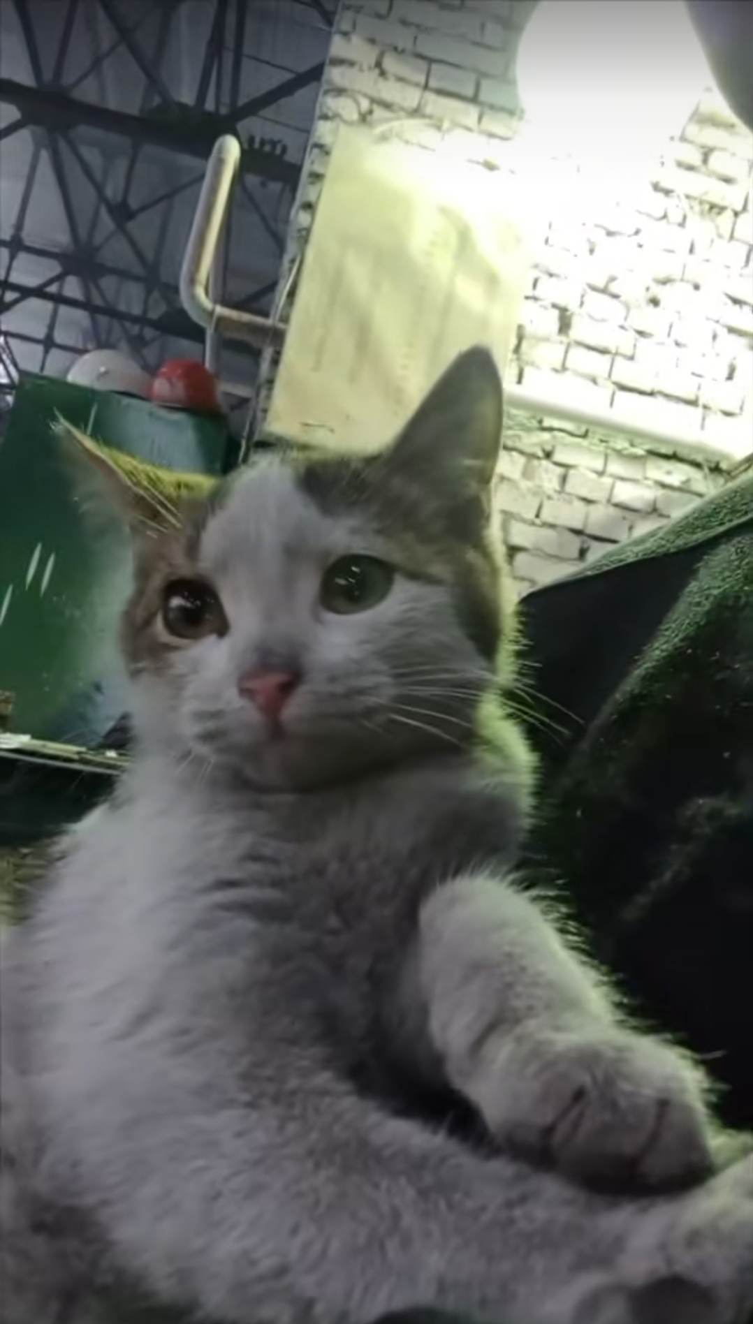 Ранее я рассказывал о том ,что цех у нас довольно- таки грязный - масло,сажа,копоть ,что неизменно сказывается и на шерсти нашего питомца.Нам его подкинули практически новорожденного ,и ,видимо , в силу этих обстоятельств,он совсем не умел умываться.Не было мамы кошки ,которая бы его научила этим премудростям.Именно поэтому ,бо́льшую часть времени он выглядит так :
