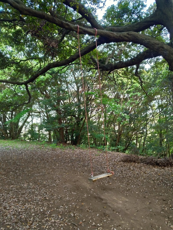 Хотелось бы остаться и сфотографировать закат, но перспектива возвращаться назад по тёмному лесу меня пугала. Вернувшись к часовне, решил поискать другой пешеходный путь с горы. Недалеко обнаружил такие качели.