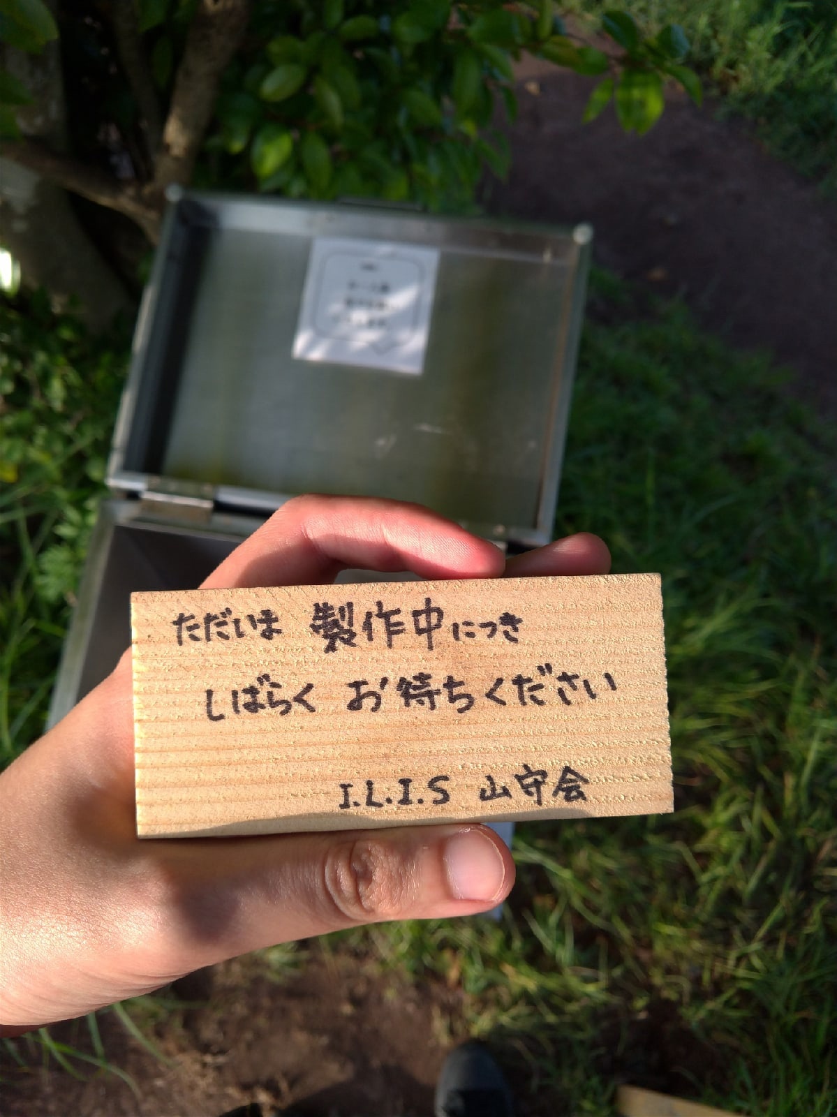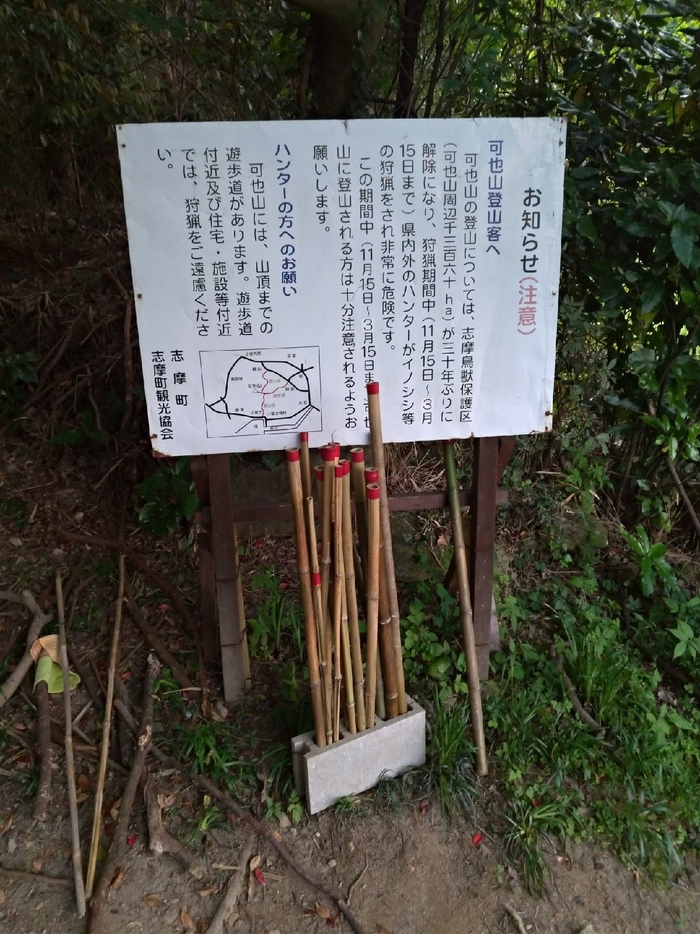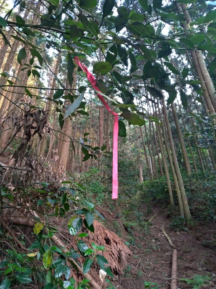 Через год после моей первой попытки я снова отправился на гору Кая. Медведи в Фукуоке не водятся, а дикие кабаны обычно сами убегают заметив человека, поэтому ничего не предвещало беды. Оделся я в старую куртку, в карманах которой до сих пор не могу вытряхнуть мелкие ветки, хвою и другую грязь. Мне снова предстояла часовая прогулка от станции до места подъёма, и снова указатель на храм с фотографии выше сбил меня с пути. У меня всё ещё было предположение, что на верху горы будет горка камней, и взяв у подножия камень я вновь полез наверх.