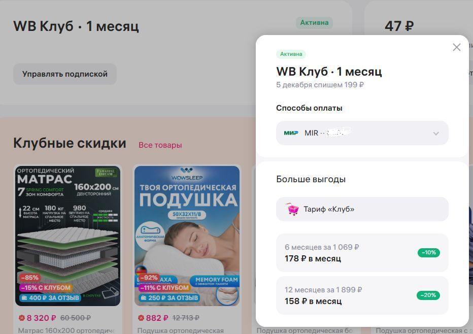А теперь, собственно, прикол. На странице этого WB клуба есть кнопка "Управлять подпиской". Так вот в этом "управлении" нет пункта "Отключить подписку":
