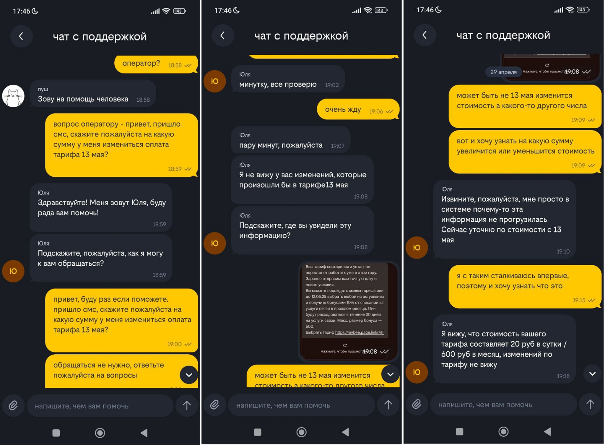 Оператор вводит тебя в заблуждение: сначала сообщает, что изменение ошибочное, а потом всё-таки меняет тариф.