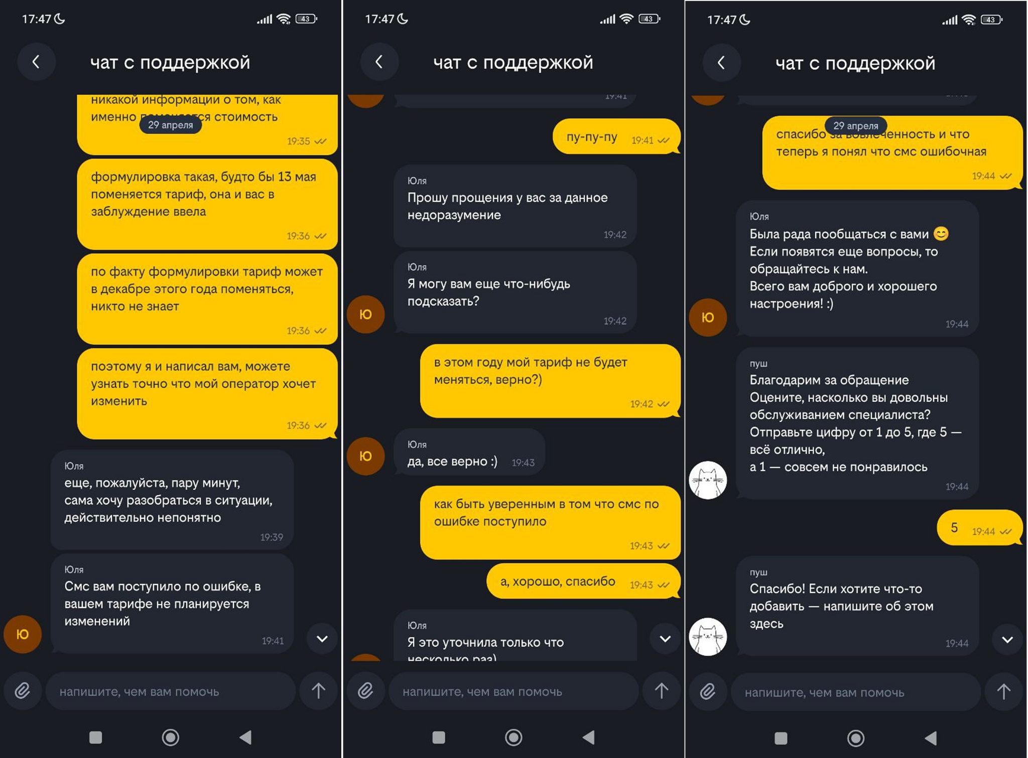 — Оператор ввёл в заблуждение, сообщив, что СМС была ошибочной.