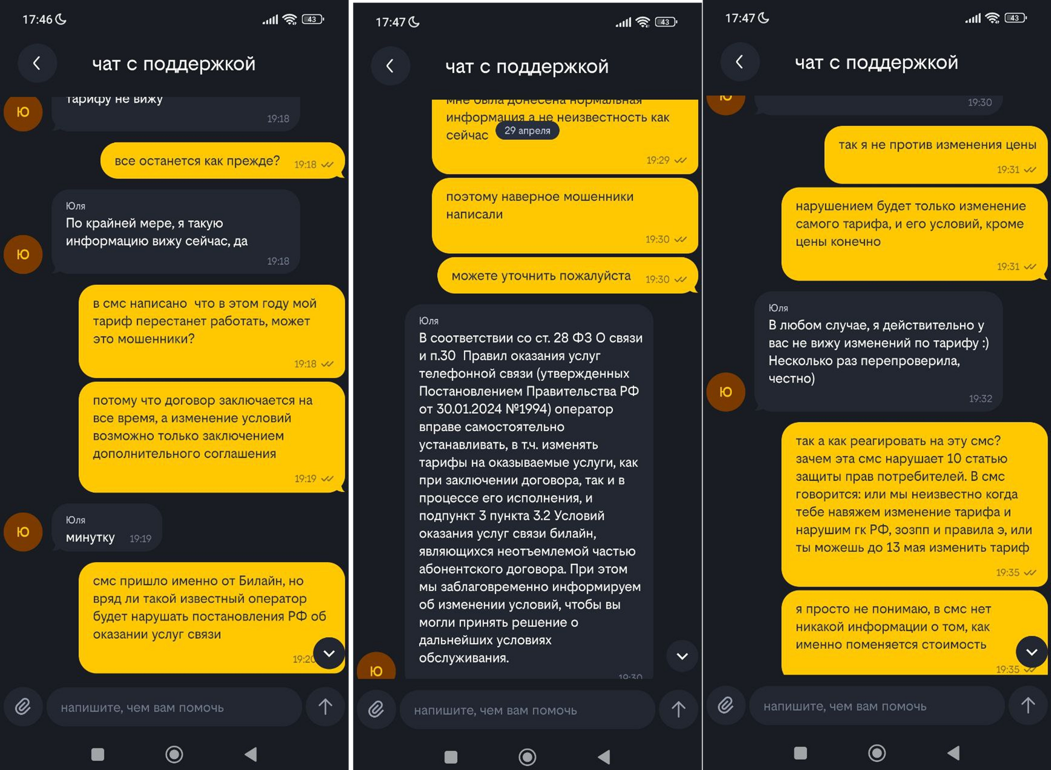 Смешная история произошла у меня с Билайн, когда мне пришло СМС о том, что мой тариф может измениться.