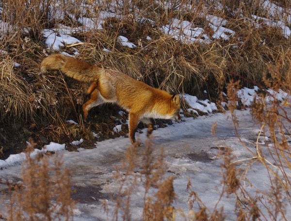 Через полчаса лис догнал нас в километре от первого места встречи - хотел еще.