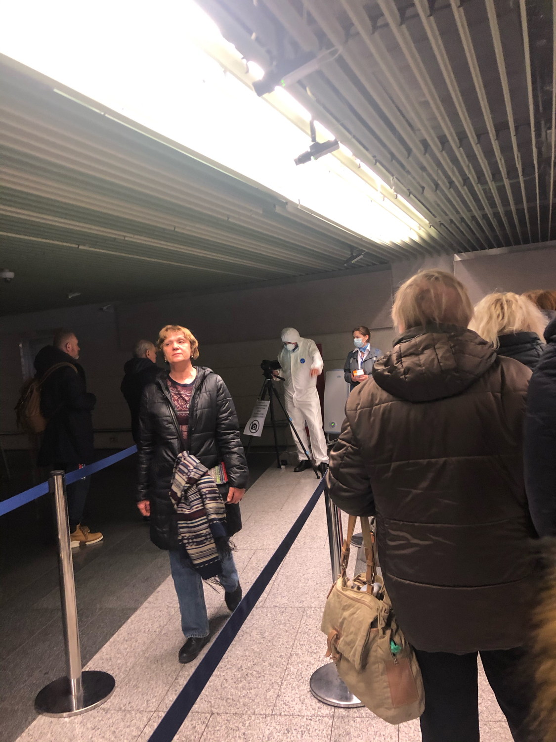 Нас выпустили... после паспортного контроля было жёстче. Фото, еще раз температура, анкетирование со всеми личными данными и в конце еще раз фото с паспортом и посадочным талоном. Весь этот парад украшали люди в спецодежде. Вот это понимаю, защита населения!