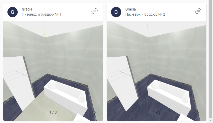 Но дизайнов получается много. Сейчас в программе 2-3 производителя плитки и ~1000 вариантов дизайна. Перебирать их в 3D неудобно и нереально. Второе обновление - каталог с дизайнами, который можно просматривать на порядок быстрее. А уже понравившийся вариант посмотреть в 3D.