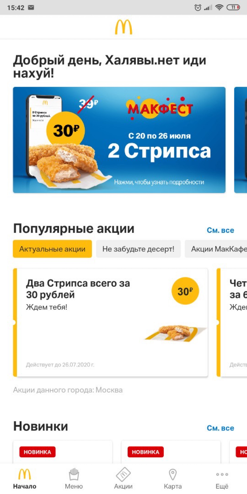 tinege 5 лет назад Приложение Макдака Если создать клон приложения ради халявы [моё] Макдоналдс Приложение на Android Ещё 0