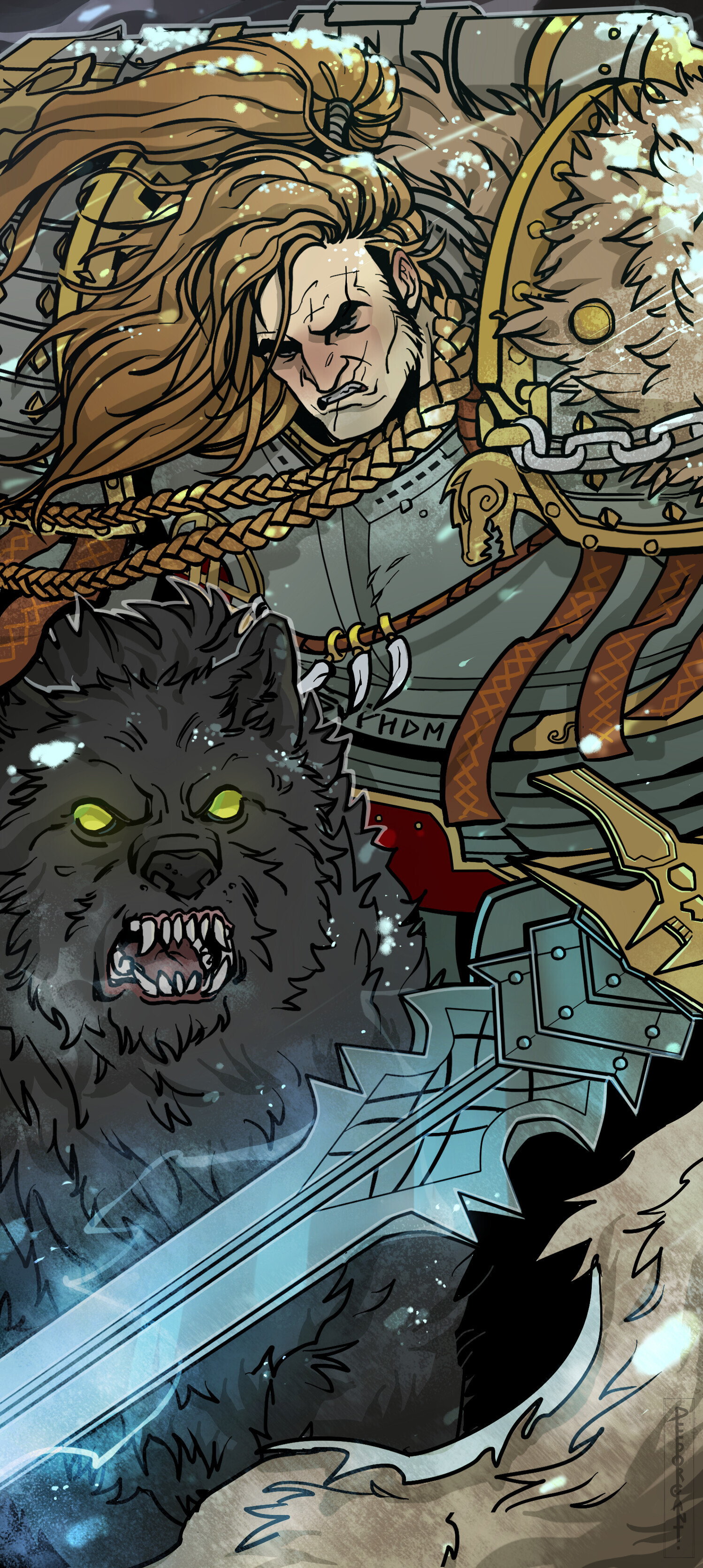 Вот мы и дошли, до одного из трех легионов "трилистника" - тех кого Император создавал в режиме сверх секретности. Я сейчас постараюсь не шутить про космических викингов, жопошников и сутулых собак, но не обещаю. Всё таки Космические волки весьма популярный и любимый многими легион. Лично я вижу много параллелей между волками и тёмными ангелами. Если первый легион построен на образе рыцарей позднего средневековья, то шестой взял себе образ суровых скандинавских викингов. Если попытаться непредвзято посмотреть на действия Леман Русса, то можно заметить, что весь его образ безбашенного варвара, дикаря и дуболома - лишь напускное притворство, чтобы скрыть острый ум, благородство и усилия избежать радикальных мер. Часто встречал, что космических волков и Русса в частности зовут палачами Императора. И в этом есть доля правды, но только доля. Действительно волки не раз выступали в качестве карательно-предупредительной меры, когда другие примархи творили дичь. Но при этом Русс прикладывал максимум усилий, чтобы мера оставалась только предупреждением. Упомяну ещё, что фенрисийцы великолепно подходили для покорения миров, где других легионов от холода не спасала даже силовая броня. Да не сожрет меня Моркаи, но специализацией Космических волков я назову "делать то, что нужно, а не то что хочется", ну или "санитары космодесанта", как раз теперь самые нетипичные ситуации. То, что другие примархи посчитали бы слишком низким, грязным и неблагородным - то делал Леман Русс и его сыны. Не потому что им это нравилось или они были готовы на всё, лишь бы выслужиться перед Императором, а потому что кто-то должен делать такую работу.