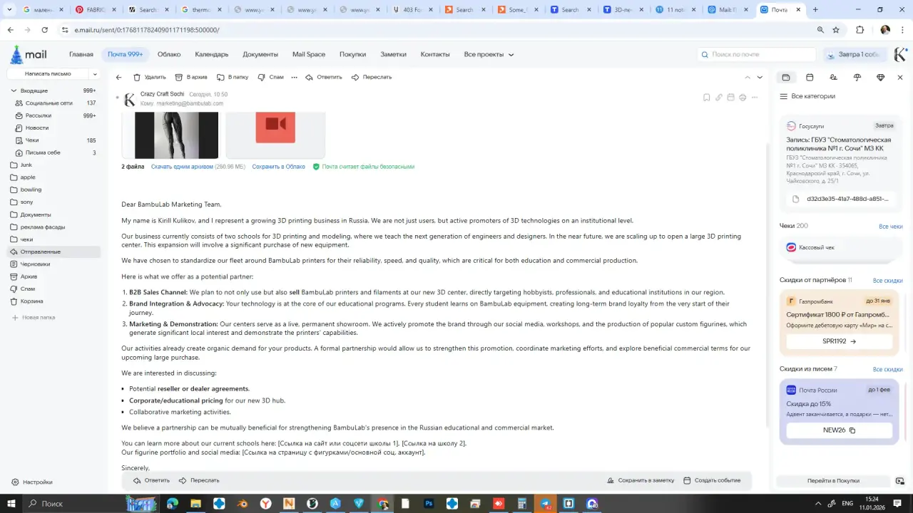Ещё хотел добавить - отдельная благодарность для ребят, комментирующих мой предыдущий пост о бамбулаб печати, где подкинули идею о сотрудничестве с бамбу, написал им письмо, возможно получится получить от них скидку или может принтер за рекламу.