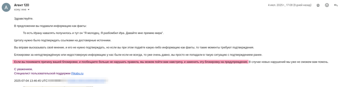 2) Нет, я не понимаю причину блокировки. Это какая-то чушь.