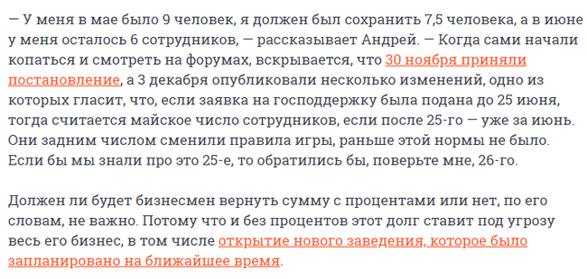Т.е. он изначально понимал, что получает поддержку больше, чем он сохранил рабочих мест, при этом,ему не хватило мозгов принять еще 3 х человек до ноября 20г, хотя бы фиктивно. Тогда он мог рассчитывать на списание кредита полностью.