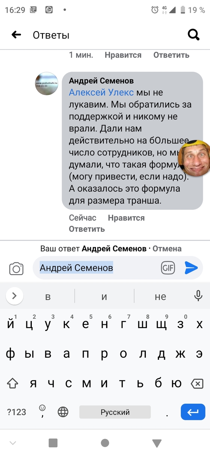 Его ответ (который выше), иначе как отмазкой десадовца 5 летнего, я не назову. О чем я и написал, после чего, в течении 2 х минут, я был забанен у него на странице и все потерли.