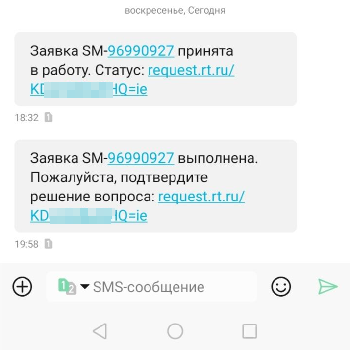 19:56 уже звонят с РТ и просят подтвердить выполнение, закрываем заявку в 19:58