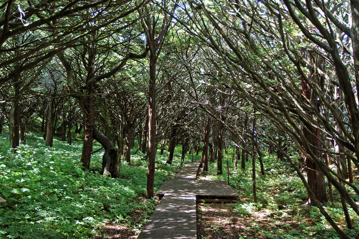 На острове уникальная флора и фауна, часть из которой существовала еще до ледникового периода - тут произрастает более 300 видов растений, среди которых женьшень, лимонник, элеутерококк, корейский кедр, но главное - реликтовая тисовая роща, которой примерно 1200 лет. Таких на материке практически не осталось, к тому же, на острове тисы гораздо тоньше - обдуваемые всеми штормами и ветрами, которые придают им их уникальность. Тисы растут до трех тысяч лет, тут есть как взрослые деревья, так и совсем молодые, которые будут похожи на своих собратьев через 500 лет. Листва тисов на острове так плотно сплетена, что в рощу почти не проникает солнечный свет, на дорожках темно и прохладно.