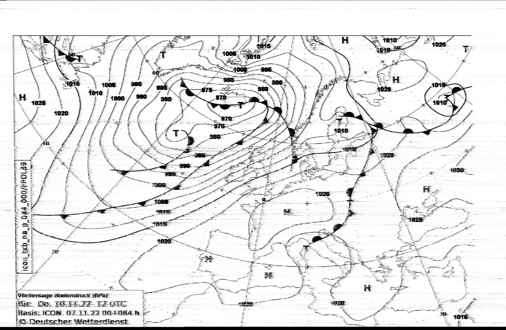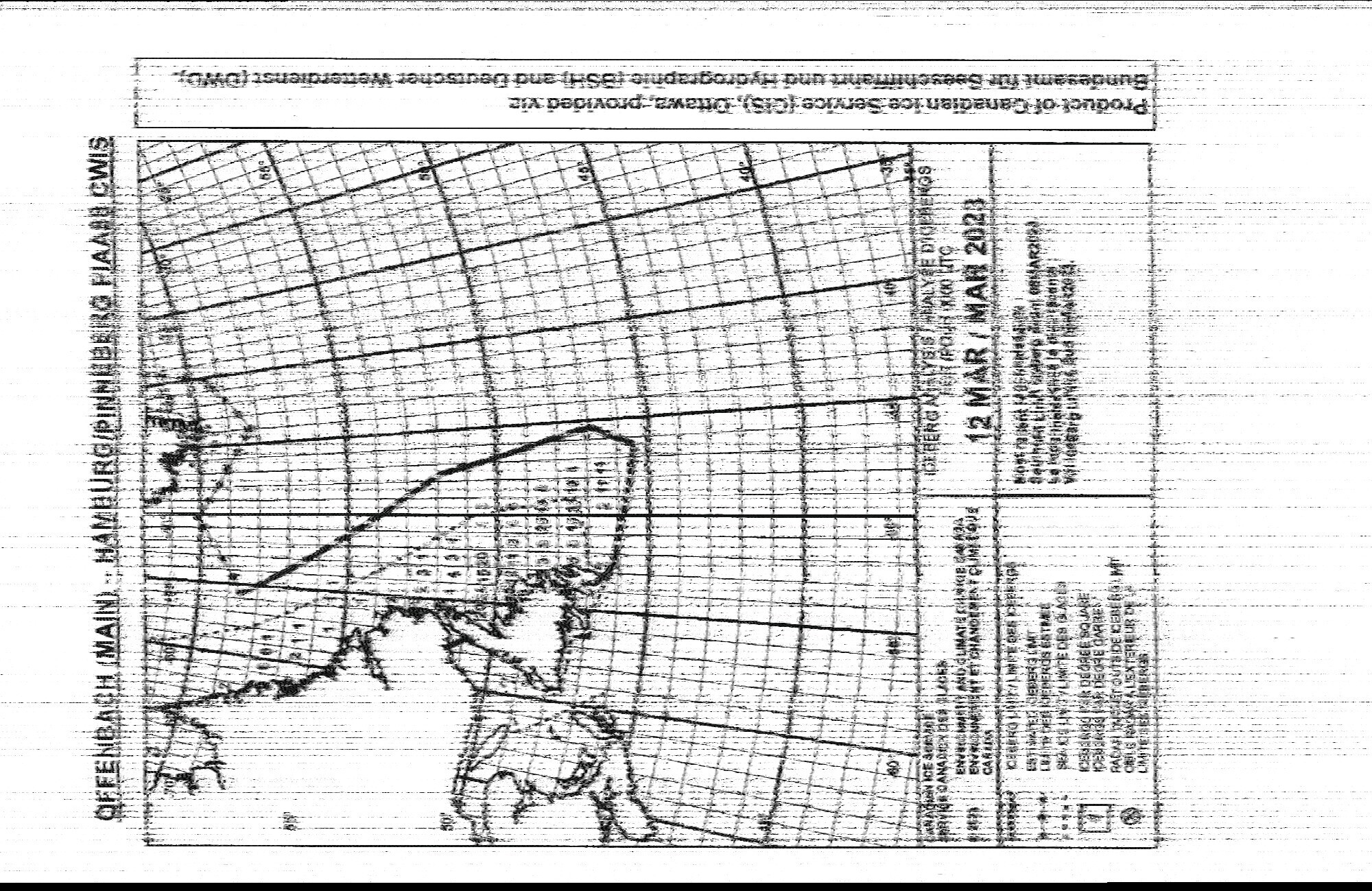 Принимаются также отечественные станции. Мурманск-Радио на частоте 6446 кГц (другие частоты сейчас не функционируют). В 18:50 GMT передается расписание в режиме 90lpm (вот вам и то самое редкое исключение), остальное время -- карты суточного и полуторасуточного прогноза, анализа состояниия моря, температуры с указанием местоположения айсбергов и прогноза их перемещения. Карты на русском языке.