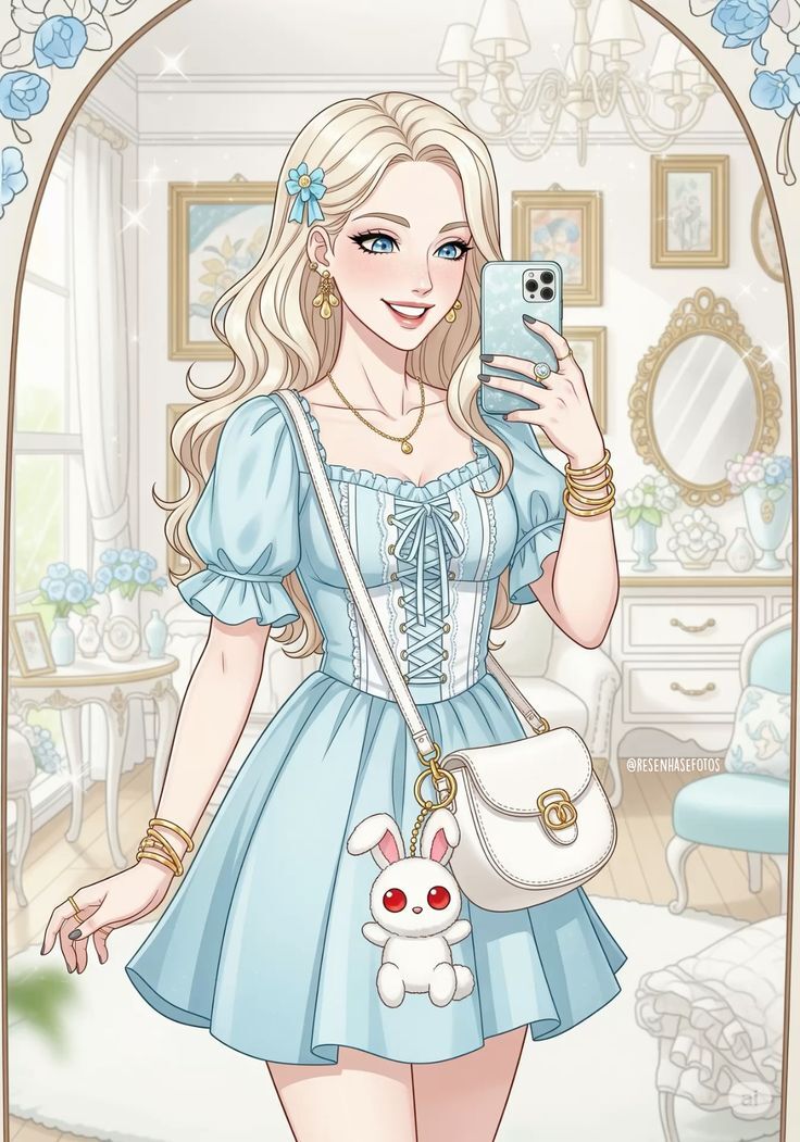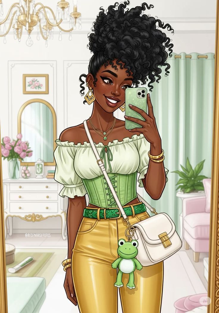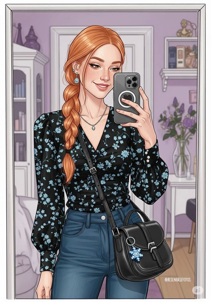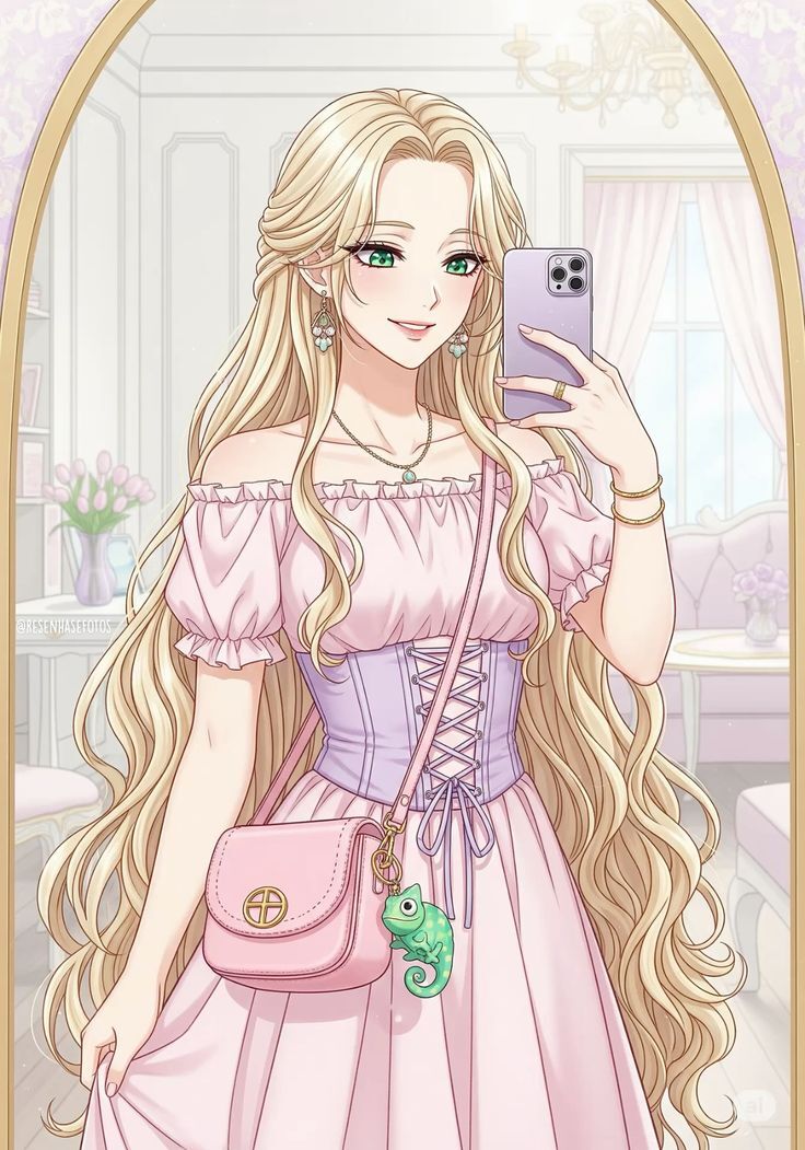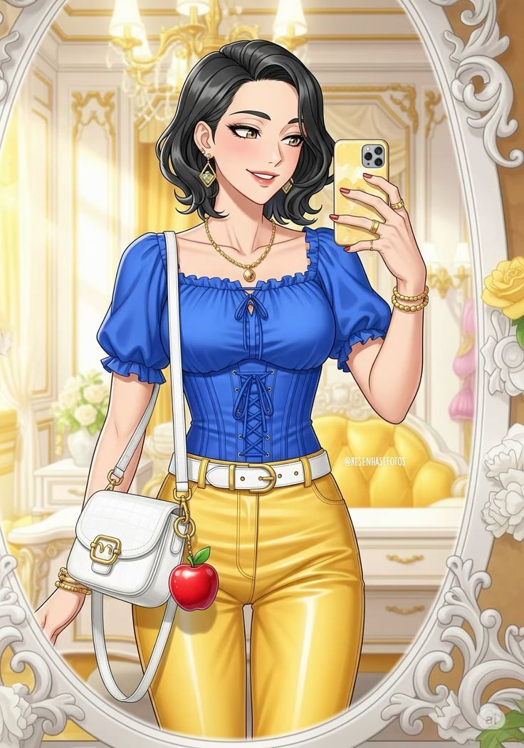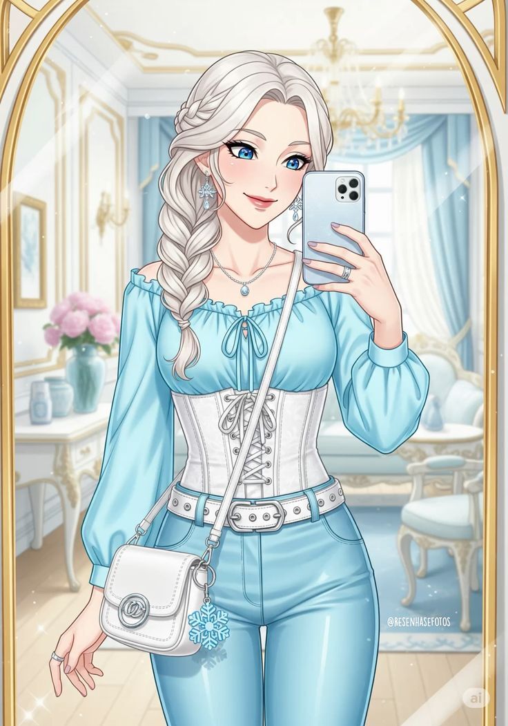 3. Каждый арт это трендовые селфи в зеркале. Кстати говоря, телефоны принцесс, вероятнее всего, от Apple