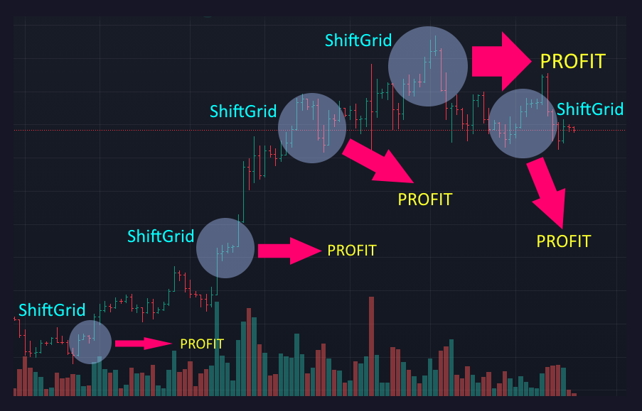 Мы попытались представить принцип работы ShiftGrid в виде некоего "поплавка", плывущего по волнам рынка. Чем выше "уровень воды" (цена торгуемого актива), тем больше "объем поплавка" (долларовая стоимость средств в работе) и, соответственно, тем большую прибыль он "генерирует". И наоборот. Важно, что процесс "плавания" никогда не останавливается⛵️