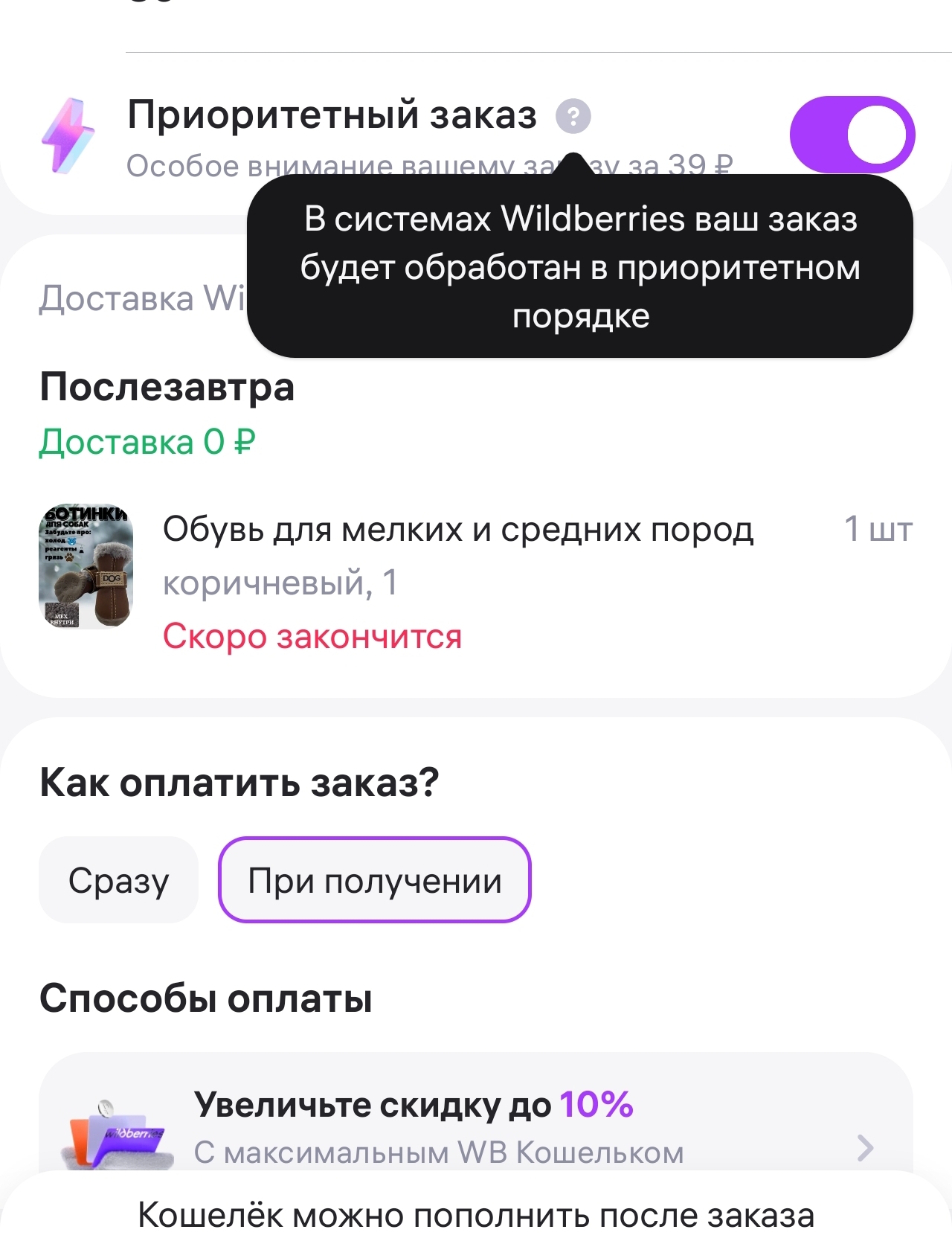 А вот заказ с приоритетом за который берут деньги WILDBERRIES и результат, заказан раньше, с доплатой, чтоб побыстрее, а по итогу опоздал, так, что народ решайте сами
