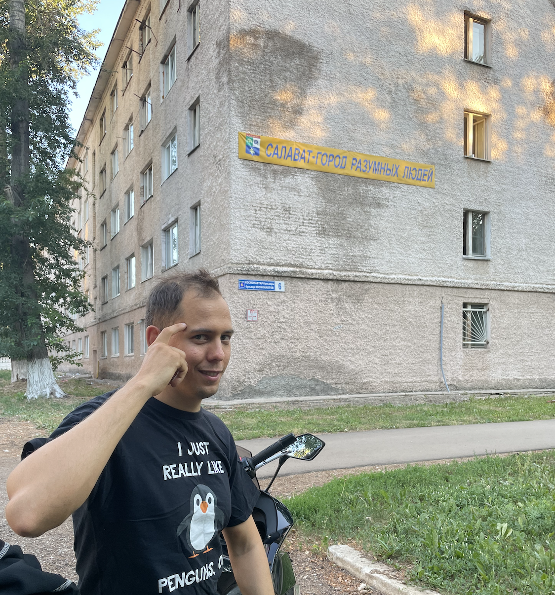 Самое смешное он из моего города, я ехал из Салавата в Стерлитамак, а он в Ишимбай из Стерлитамака, встретились в 30и км от дома ))))