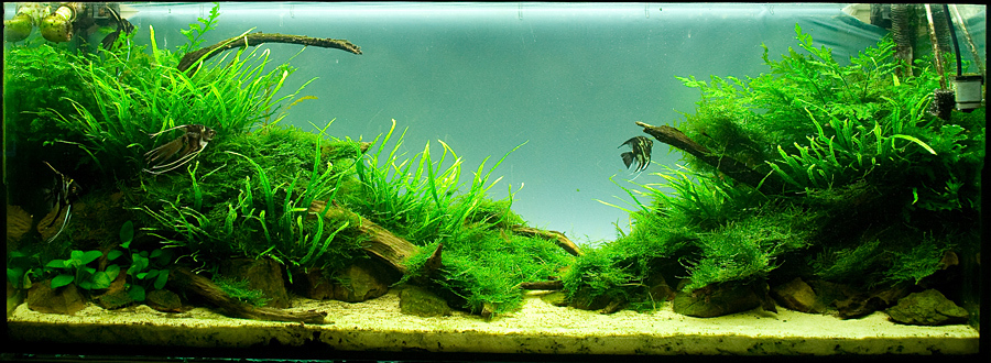 Декорации: использую камни с Алтая и коряги, правда уже не с Алтая. Коряги можно использовать, в принципе, любые, за исключением хвои. Главное правило, - коряги должны быть сухими. Я их никогда не варил, просто мыл, но зачастую, наши коряги быстро гниют, могут и пол года не пролежать. Именно поэтому, я использую покупные - мангровый корень. Эти коряги по определению никогда не гниют, они то и будут оптимальным выбором. Но когда начинаешь смотреть на цены, начинаешь понимать что ты зря учился в университете, ведь можно ветки продавать по 1-2 т.р. за ветку.... Да-да, зачастую магазины просто гнут и без того высокую цену на них. Я уж молчу про покупной камень. Да-да, камень тоже продают, и его, кстати, часто покупают. Если цена коряг объясняется их местопроисхождением (где то в районах амазонки), то с камнями непонятно, привезти их могут по сути откуда угодно, но есть один лишь плюс, скорее всего они будут максимально хорошей формы и с хорошей фактурой. Еще очень часто продают камень породы - лава. Вот это вообще крутая штука, за счет свой пористости он обладает достаточной легкостью и к нему очень хорошо прирастают корни папоротников, анубиасов или же хорошо прирастают мхи.