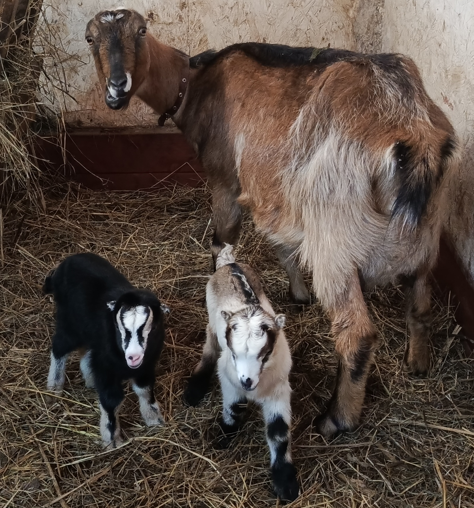 Пока суть да дело, первый куб уже выгнался, и я поставил на плиту следующий. В этот момент сердце ёкнуло. Началось, подумал я, и не ошибся. Зайдя в очередной раз в сарайку я увидел как новоиспечённая мамаша облизывает своё дитя. Сзади из неё торчали копыта следующего. Пришлось на неё морально надавить, что бы она не забывала тужиться время от времени. Это возымело результат, и буквально через пару минут на свет появился ещё один экземпляр. Дав новоиспечённой козьей семье немножко обнюхаться, взял подмышку детей и понёс до хаты, дабы мать маленько выдохнула, а дети по-хорошему обсохли.Через час-другой, когда самогон уже был выгнан, а дети проголодались, отнес их обратно в родильню, что бы маманя успокоилась.