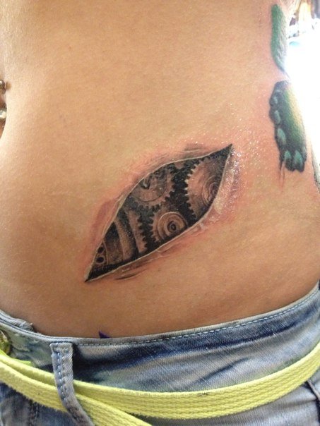 Фото зажившей забываю сделать. Бабочки символизируют бабочек, вылетающих из моей тушки из разрыва с шестеренками внутри. (Это пояснение на случай предположения, что я - жрица любви из Таиланда) :)