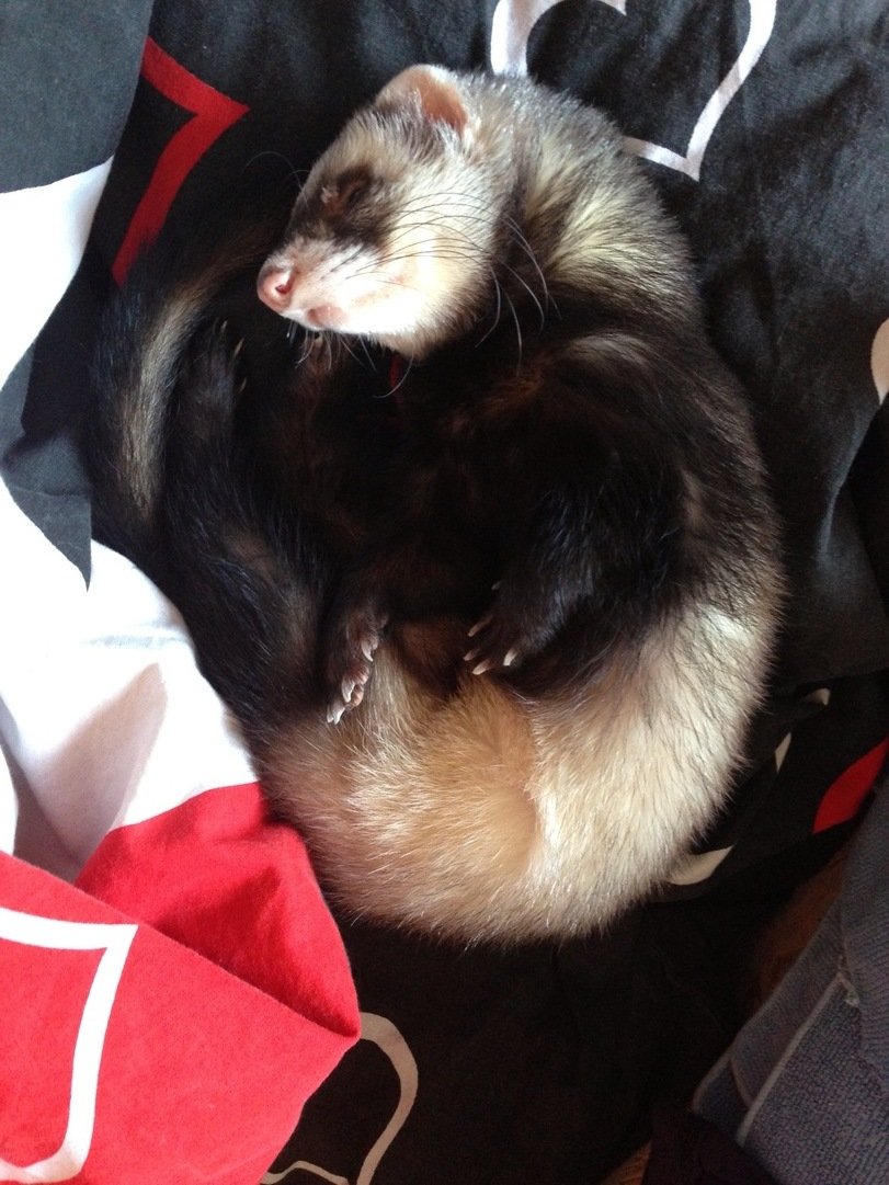 Ах да.. ощущение, когда хорек сам влезает к тебе на руки и на них засыпает - это что-то неописуемое) Еще и вздыхает так перед сном, как человек совсем)