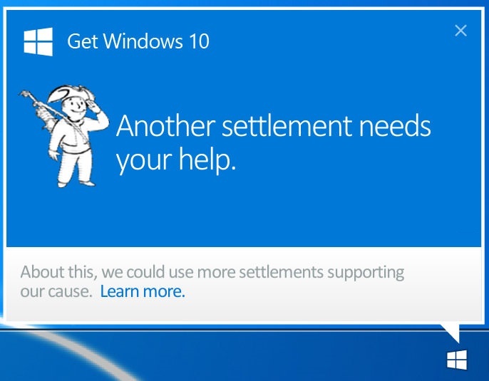 26 Cak3 Пришло оповещение об апгрейде до windows 10 9 лет назад Хотя стоп, минуточку.... Windows 10 Fallout 4