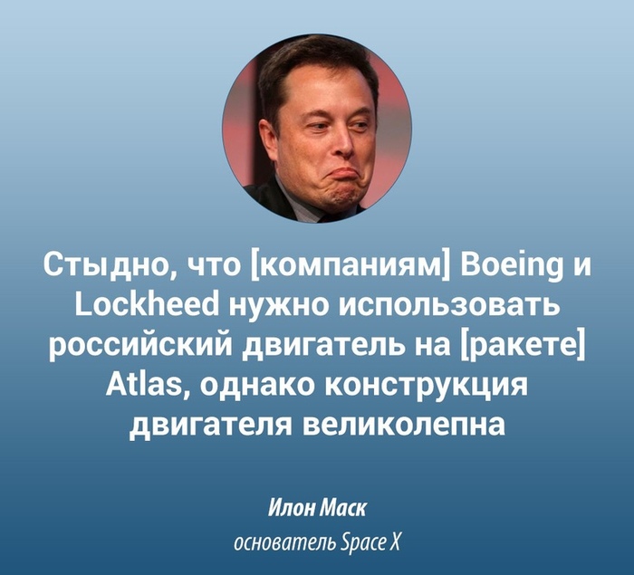 "Доступный России технологический уровень не позволяют достичь конструктивного совершенства ракеты-носителя Falcon 9. Конечно, «Зенит», а в будущем «Союз-5» как российский клон «Зенита», может выводить на орбиту достойные нагрузки, но для этого ему приходится использовать дополнительную третью ступень, которая по советской традиции называется «разгонным блоком». Именно поэтому вторая ступень «Зенита» и «Союза-5» меньше. Но реализованное SpaceX конструктивное совершенство дало возможность создать двухступенчатый кислородно-керосиновый носитель Falcon 9 (т.е. отказаться от кислородно-водородной супени), который перекрывает все имеющиеся ниши среднего и тяжелого классов. И для этого вовсе не нужен двигатель замкнутого цикла и выжимание последних секунд удельного импульса."