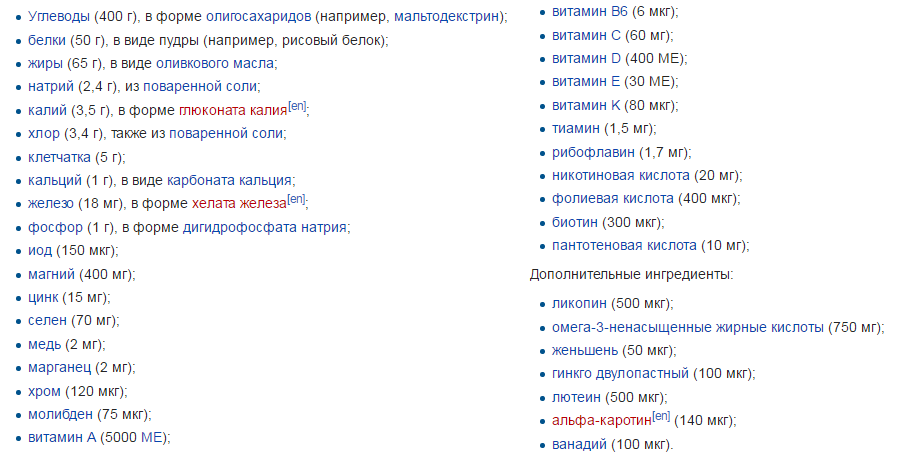 Состав продукта, скриншот с Википедии:
