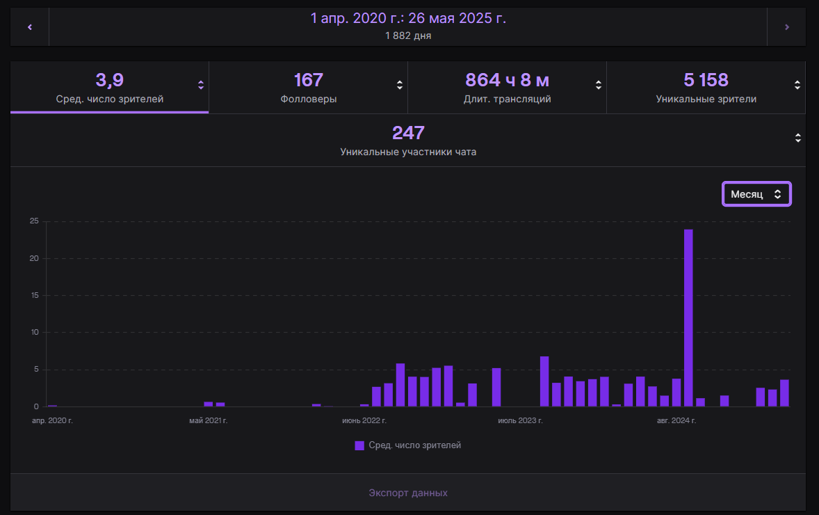 В итоге, что мы имеем: 5 лет стримерства на твиче или 864 часа или 36 дней принесли околонулевые результаты, если смотреть на дистанции. С ютубом дела обстоят лучше, там и подписчиков можно набрать засчёт видео (на данный момент у меня 370 подписчиков), и привлечь новую аудиторию легче.