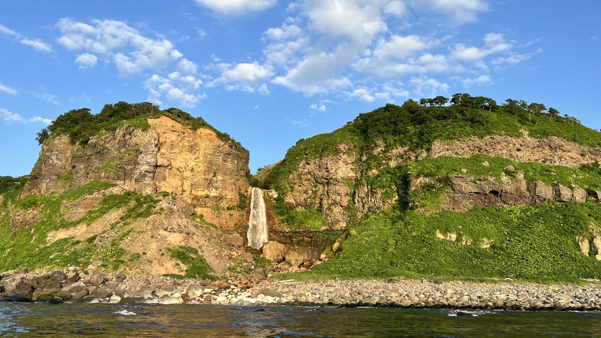 Скалы были действительно красивые, на полках гнездовались бакланы, а вершины были покрыты зеленью, мы увидели наше место обитания с морской стороны. Чуть дальше вдоль берега в море впадала та самая река Черная. Она не стекала шумным потоком в море, а падала водопадом с отвесной скалы, красиво. Хотел добавить это место на Яндекс карты, почему то не получилось, позже попробую еще раз. Получилось добавить другие, более мелкие водопады вдоль берега, к которым мы ходили прогуливаться по выходным. Если хотите можете поискать эти места на Яндекс картах.