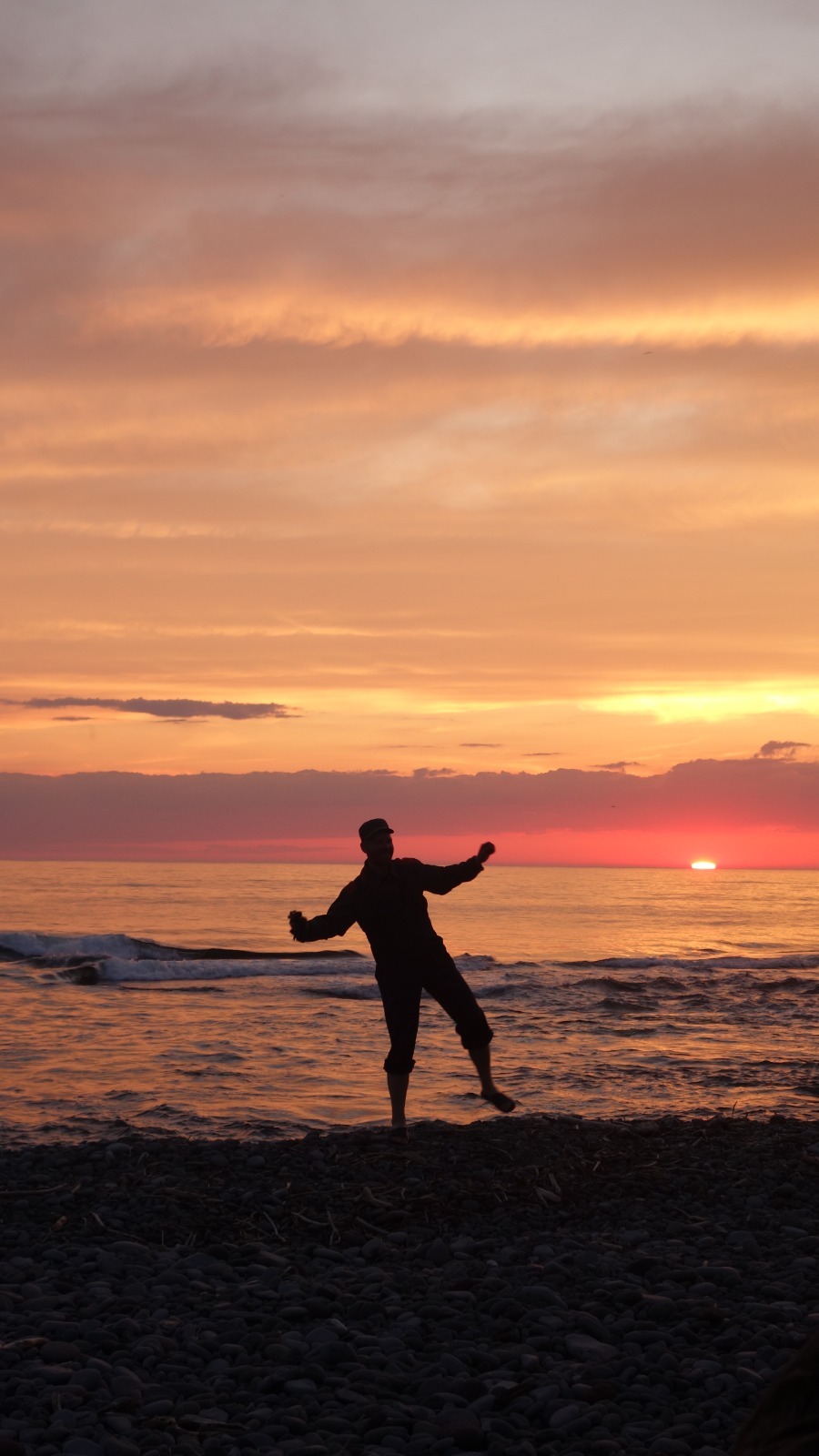 Последнюю ночь мы с товарищами провели в нашей бухте на берегу, организаторы наводили порядок на станции для будущих отдыхающих, мы жгли горячий костер под шум волн и такой же пылающий как наш костер закат. Завтра мы будем немного ближе к дому, и все дальше от этих мест, на этом вулканическом острове я оставил свой небольшой след, а он оставил след в моей жизни.